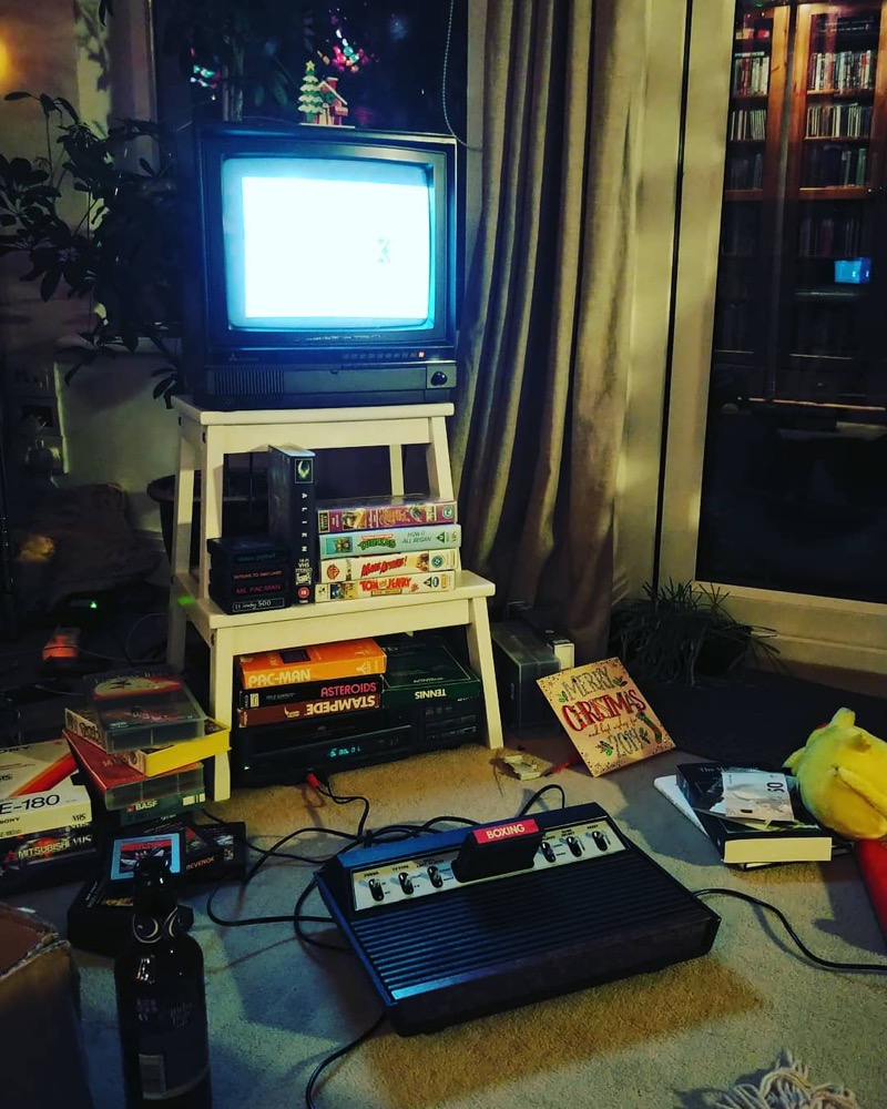 ☺︎ ∙ Chat & General Interests / Re: Unique Holiday Traditions« on: December 09, 2022, 04:53:16 am »My family isn't big on traditions other than the usual decorations, presents and dinner. But I personally like to binge horror movies set during winter or in snowy places, like The Thing or 30 Days of Night, and also cheesy holiday movies like Noelle and Elf. It's a fun combination. 2019 was great, I got myself an Atari and my old VHS player which mostly worked sometimes! We watched old VHS movies like the Dark Crystal; it was nice to have the old TV loved as the centre of media after it was unused for so many years. I guess I have a very strong emotional connection with objects I love this setup. It makes me feel so nostalgic. 160