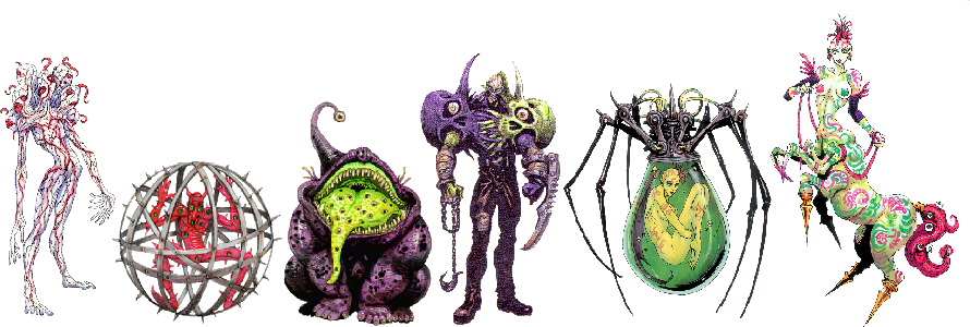 this game is significantly more obscure than the last two mentioned, but considering i'm a sucker for weird obscure things i might as well talk abt it. volfoss is a trpg on the psx that was never released outside of japan and the big thing abt this game was that character design legend yasushi nirasawa designed it's characters and enemies. i have never actually played this game despite being in possession of a rom of it, but considering who designed it's characters, i'm kinda obsessed with these guys
