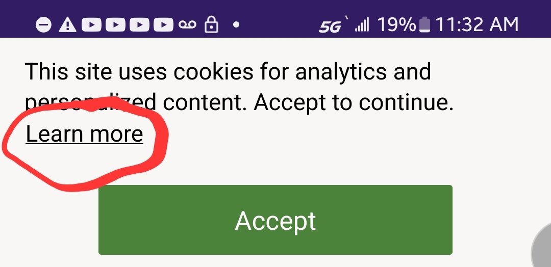 If we were to tap on the "Learn more" link in the banner, we would be taken to Microsofts Privacy policy, even scrolls down to the cookies policy.