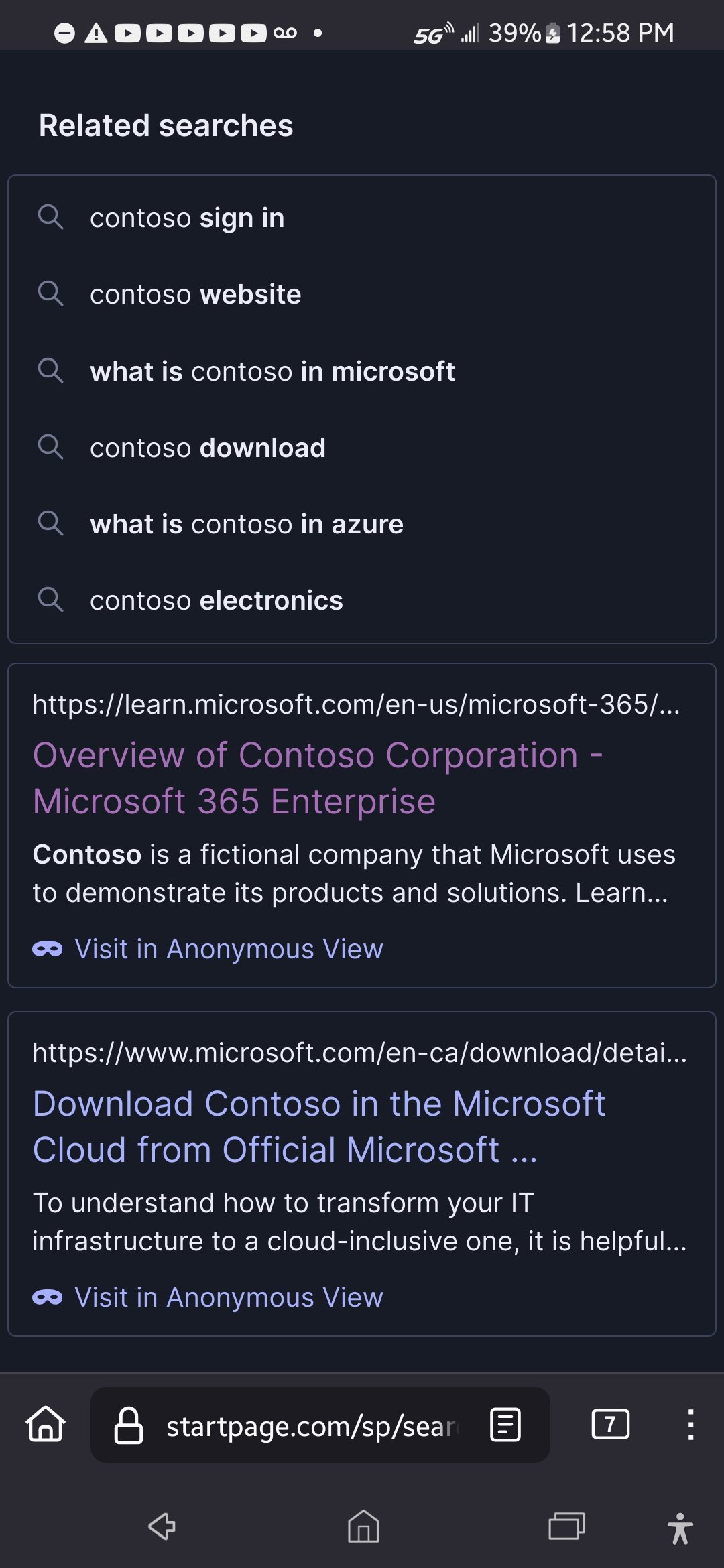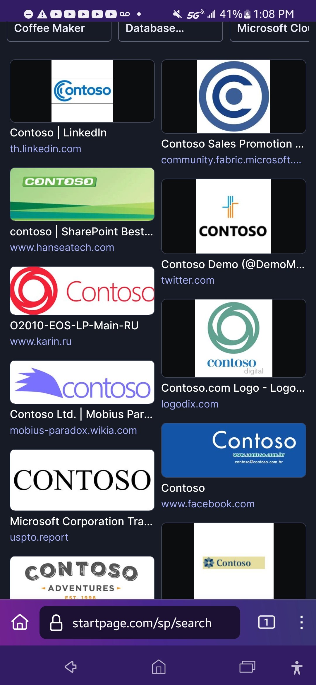 Searching for Contoso on Startpage Images shows multiple logos of.. Contoso. In different styles.