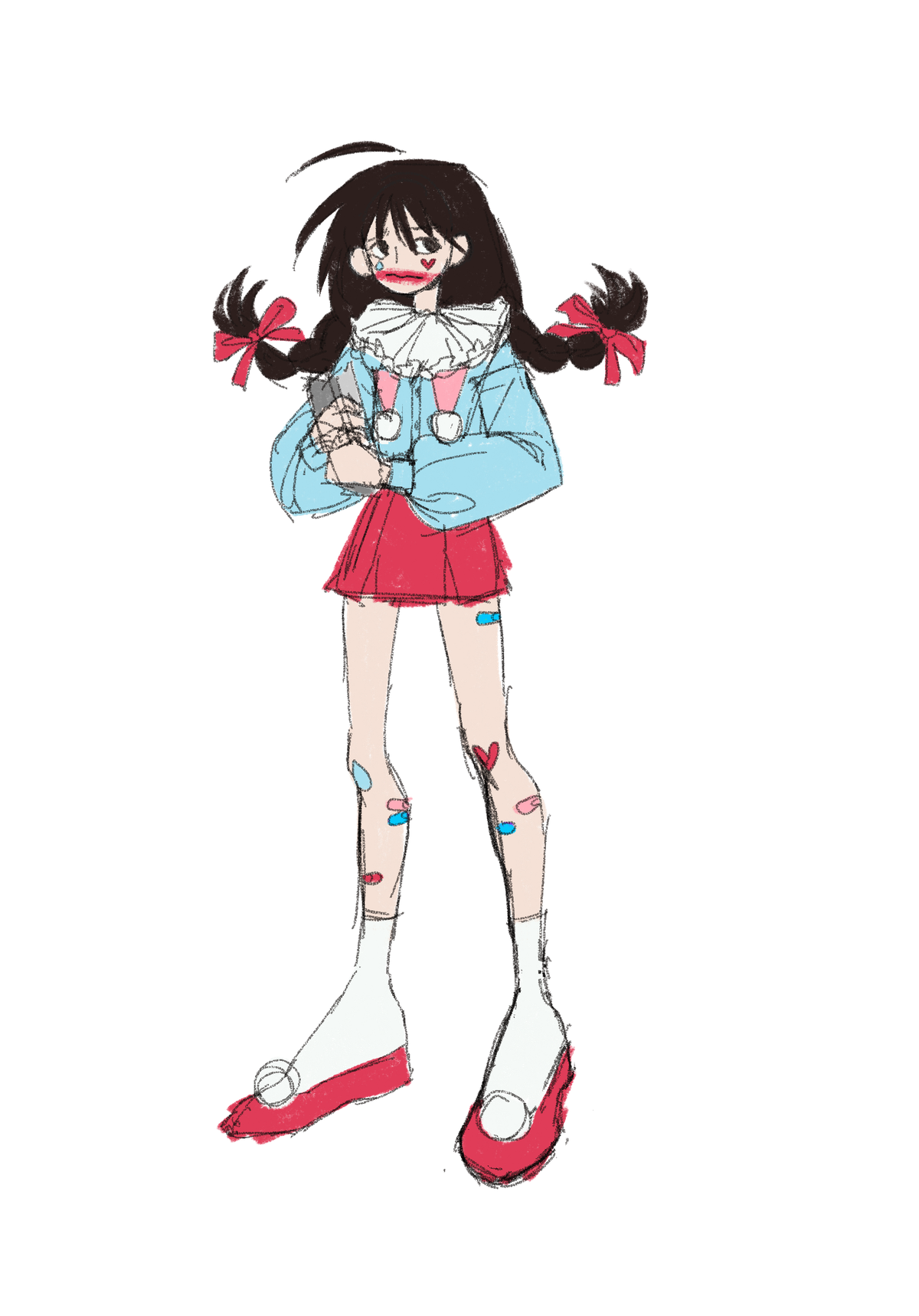 Yinn (who is another self insert OC), she's an office worker who is so pathetic and wants to fit in so badly! She is always working her hardest but will never be accepted in because (surprise!) she is a clown. Very obviously so. And everyone knows and finds her weird but she just doesn't understand why and keeps trying her hardest to fit in with her colleagues.