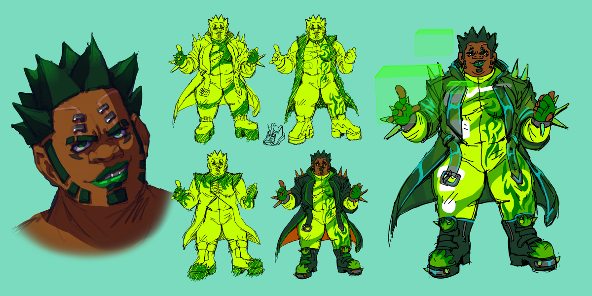 Maxime is the most controversial racer in the league, usually placing around mid-tier in the rankings but infamous regardless for it's many controversies involving dangerous, combative driving and strong opinions on how the league is run. In his free time he is an expert hacker specialising in cybernetics - a fact that Orion, with their multiple cheap cybernetics may find out the hard way…! Maxime is my take on the yandere archetype, but also an exploration of the politics of the setting. A lot of Maxime's issues with the League come from the amount of money involved, inspired by my own observations when researching the world of Formula 1 for this story.