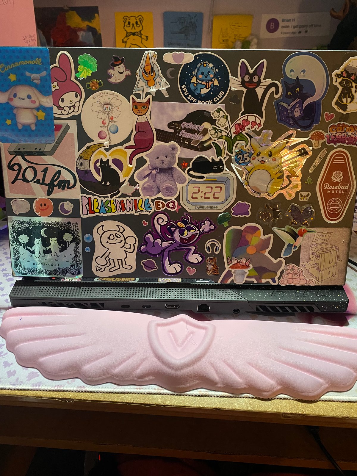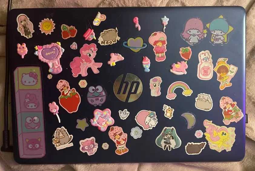 i've added stickers of all of my most favorite characters some of these r from amazon, some r from dollar stores, and some r from miniso!! most of these ive had for years, i cant wait to replace them with some new ones that arent falling off...