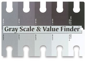 There are little notches cut into each shade of gray to isolate a tone underneath the card to check how light or dark it is in comparison. If you need some pictures to test it out, most photo manipulation programs have settings to turn color photos into black-and-white/monochrome ones.