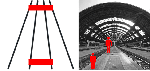 The Ponzo Illusion, overlapping lines might seem to distort the lengths and sizes of others: