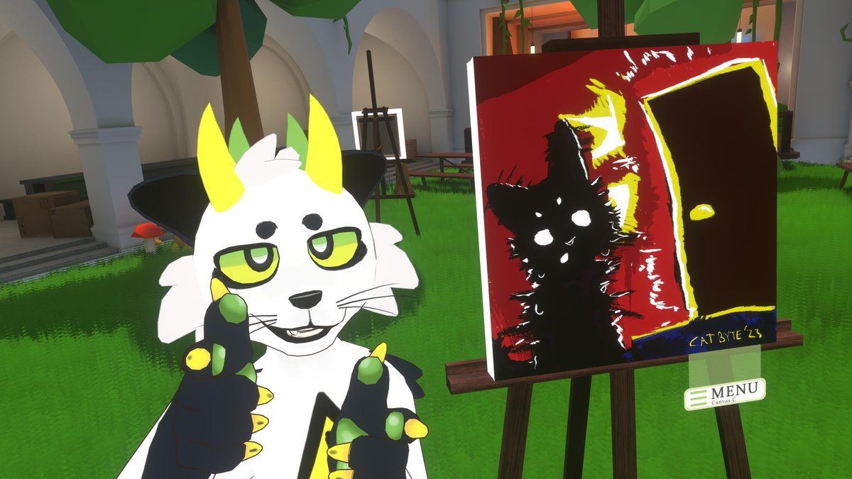 wasn't originally intending to do my entry in virtual reality, but i ended up with a headset on today. i also ended up finding an art world i hadn't used before- so i figured why not! (the world was Mixie's Finishing Touch!)
