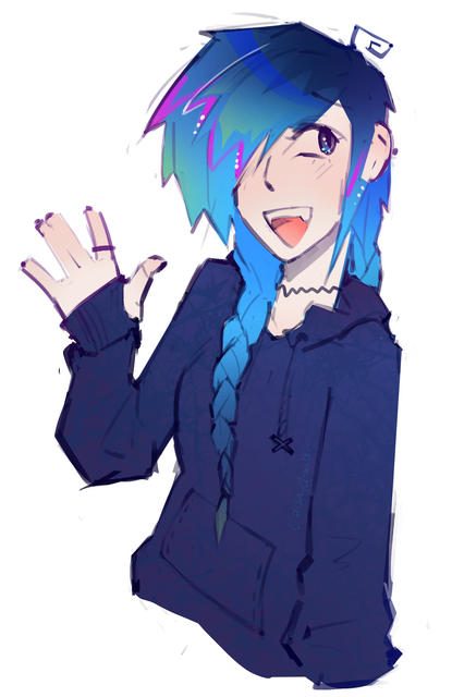 not the best ref ever the rest of her fit is just blue bondage pants TwT