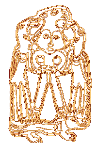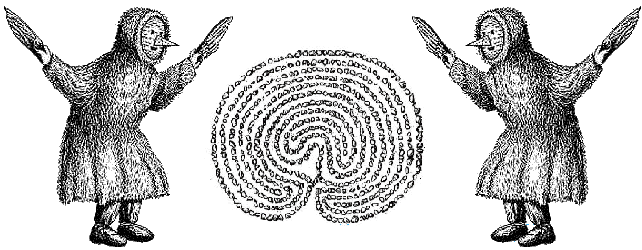 In the center is a "giant's garden", a Finnish Troy town. At the sides, Ob-Ugric costume for something I'm not sure of: