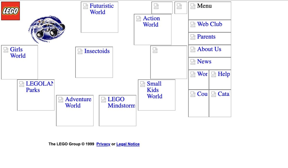 LeGo WeBsItENotabot made the interesting observation in the shoutbox that the Lego website covers almost the complete history of web design, I though it would be useful to screenshot every major design change that happened on the site and have a discussion about it!1996-1997 - Archive Link"This is Home" The earliest design of the site is from 1996, only two years after the launch of the World Wide Web. I particularly enjoy the random photo album with pictures of Russia taken by a lego employee on a trip! This site still really is designed around the idea of web-pages; it has links that go to pages and there's very little abstraction surrounding those pages. Its also worth pointing out that the website Club is present here! It remains present in different forms for the whole history of the site. I also love that they speak to kids directly as if they were functional human beings, that's respectful and I would have appreciated it as a kid. "You are simply a VIP, our most important person [] we made this site for you".