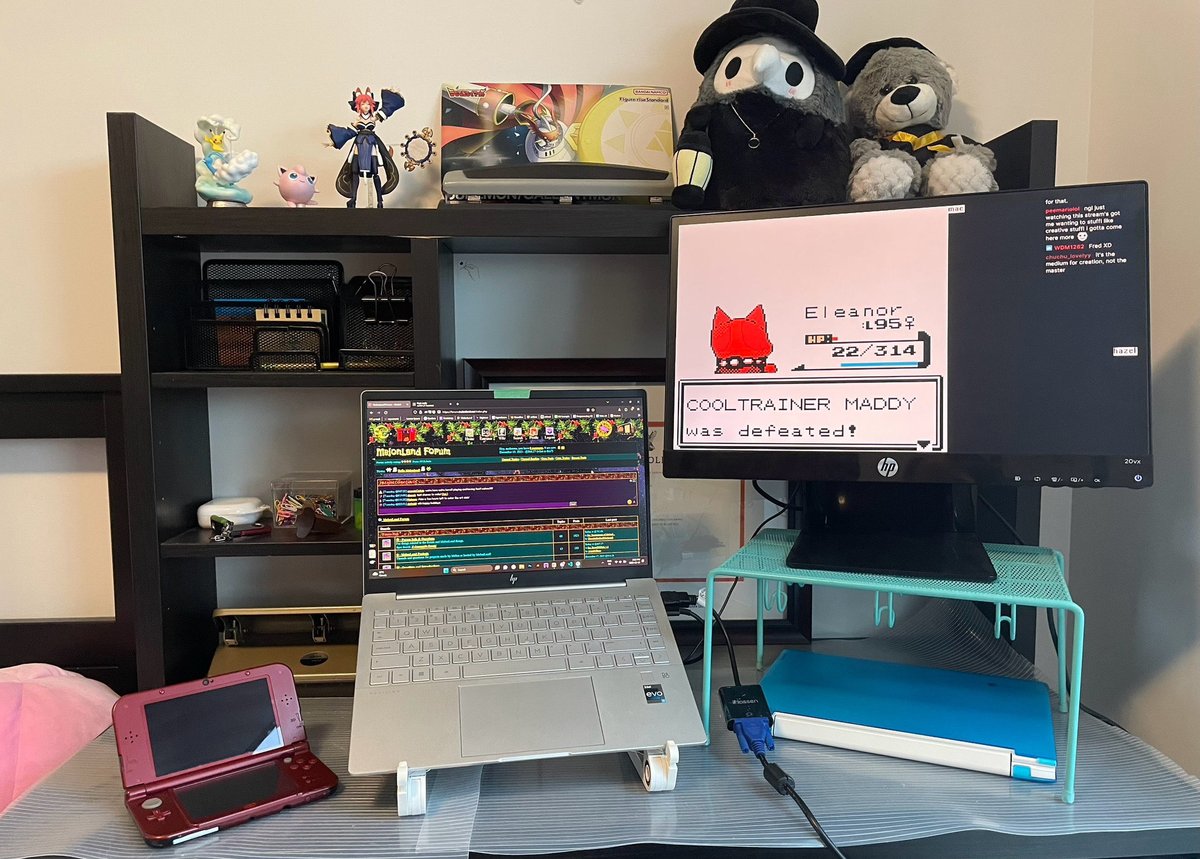 I use this both for college and just whenever I want to surf the internet. The blue laptop is unfortunately a chromebook I've had since high school. Only reason I still have it is because I've gotten too used to using it to draw. Anyways. Not much going on here because I don't have much room LOL