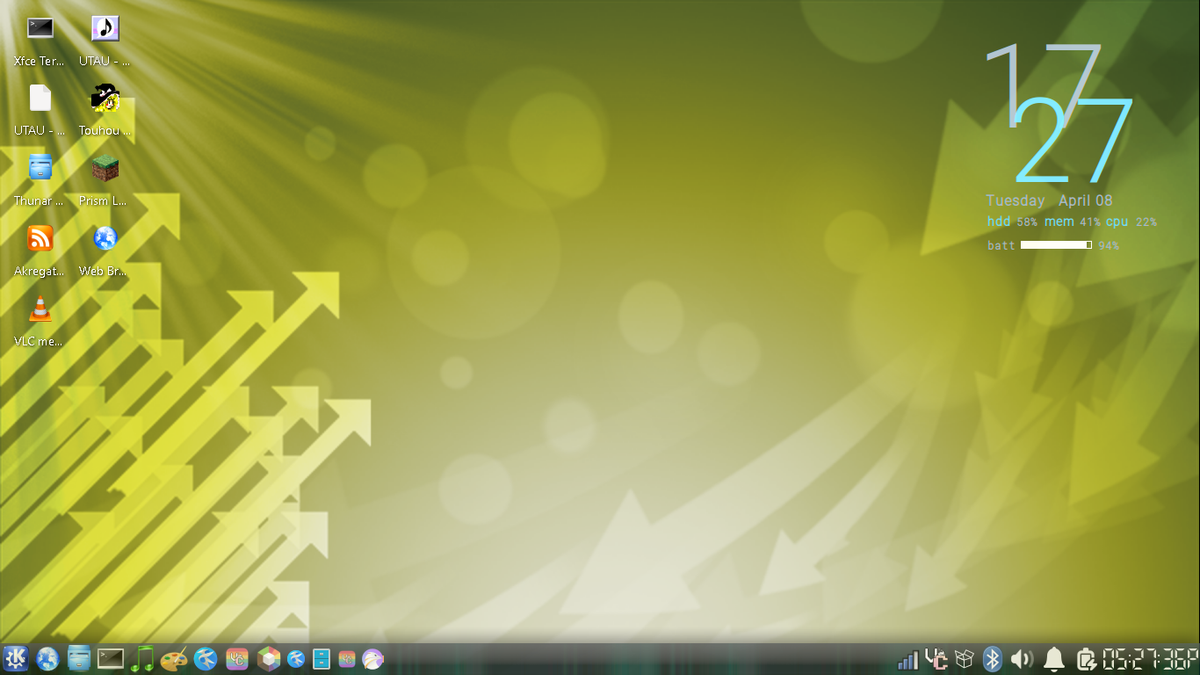 My desktop has a lot of widgets and I have removed the task bar entirely. I use KDE plasma and prefer a square CRT monitor which I found in the trash behind an abandoned call center. I highly recomend dumpster diving as a way to get computers and computer accessories. Anyway, the calculator has been pretty useful as has the always open shortcuts folder. It makes my desktop organized when I go into it with the terminal so I get the best of both worlds - icons on my desktop but the ls command is not crowded when I travel there to edit my website or write melonland comments like this one. my desktop